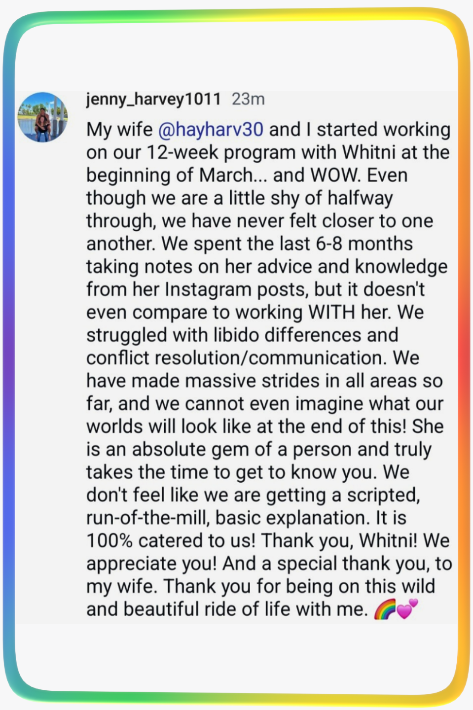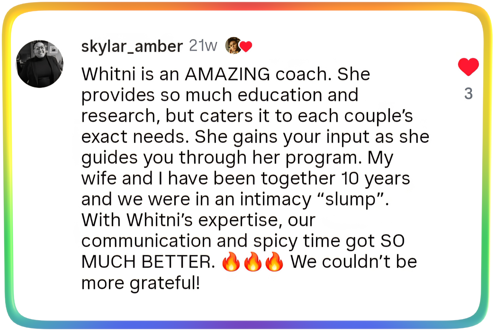 I'm Whitni, and for over five years, I’ve guided hundreds of couples past this exact roadblock. I understand that for queer couples, intimacy is often intertwined with complex dynamics, societal pressures, and the need for a truly safe and celebrated space within your bond.
